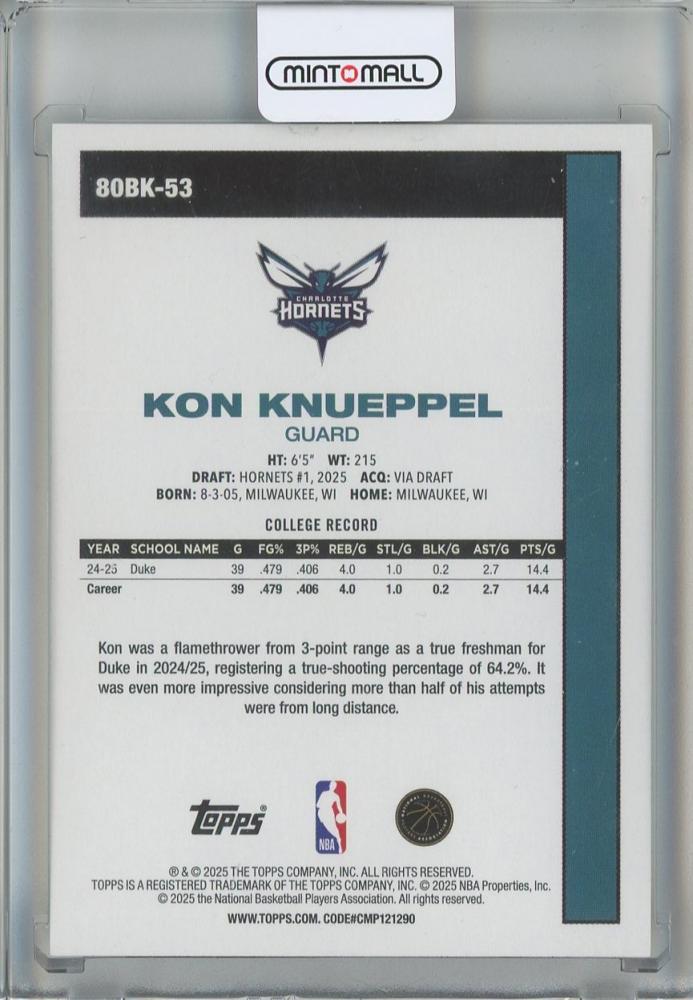 2025-26 Topps Kon Knueppel 80-81 #80BK53 Charlotte Hornets