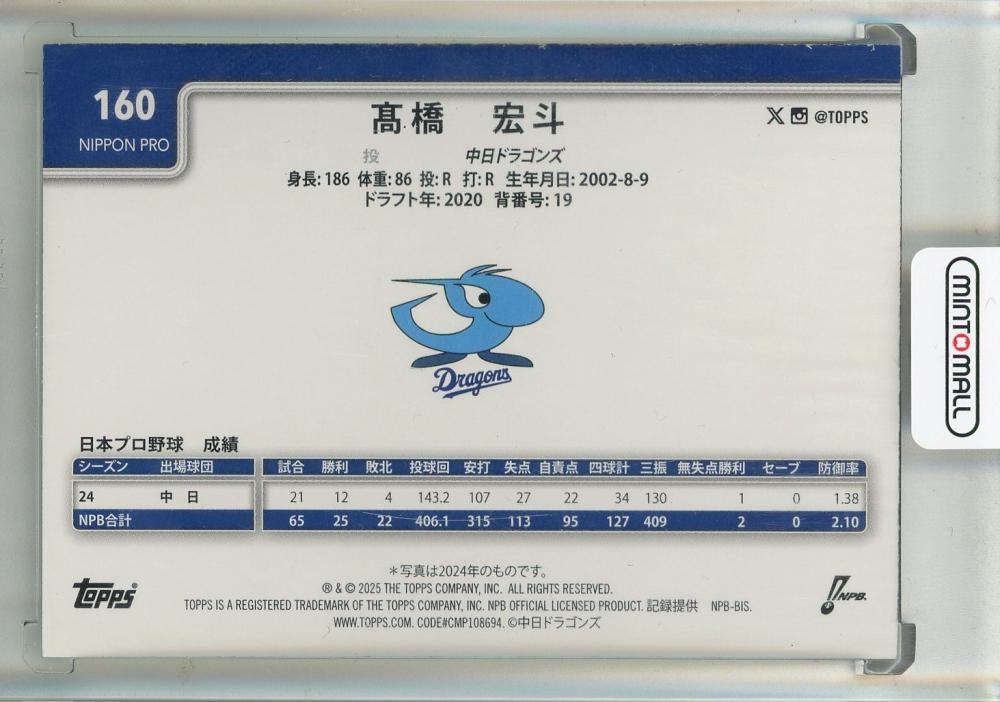 2025 Topps NPB 高橋宏斗 グリーンパラレル【17/99】 中日ドラゴンズ