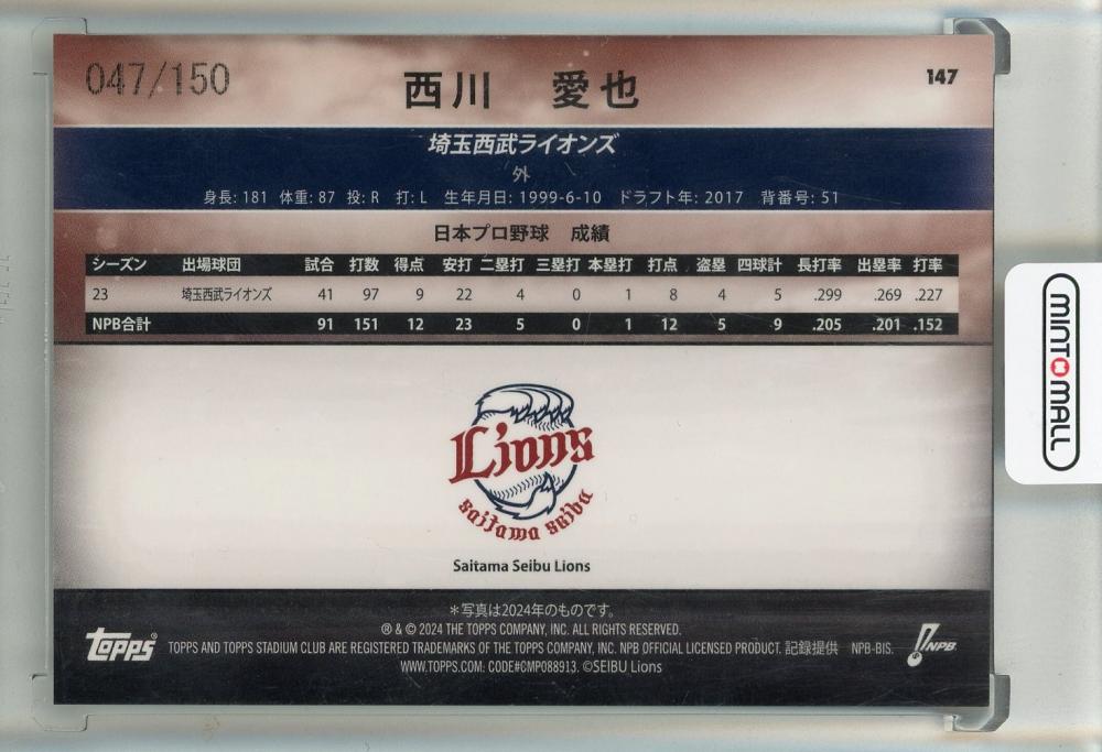 2024 Topps Stadium Club NPB 西川愛也 ブルーパラレル【047/150】 埼玉西武ライオンズ