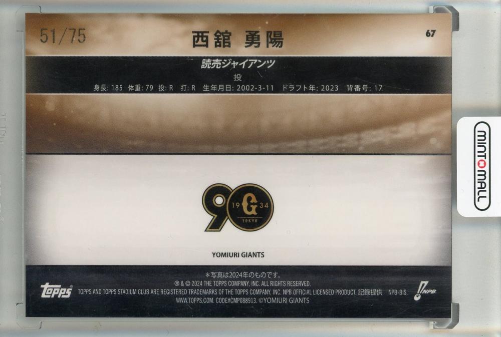 2024 Topps Stadium Club NPB 西舘勇陽 ピンクパラレル【51/75】 読売ジャイアンツ