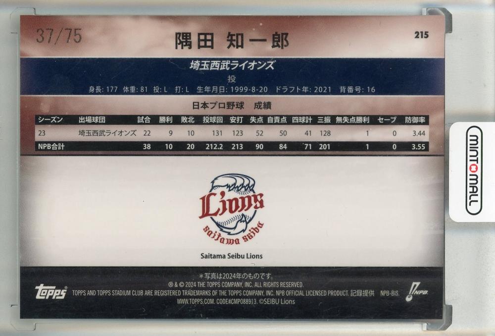 2024 Topps Stadium Club NPB 隅田知一郎 ピンクパラレル【37/75】 埼玉西武ライオンズ