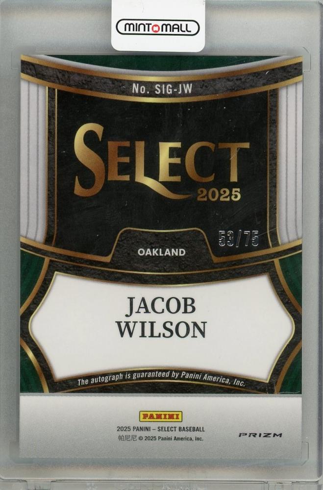 2025 PANINI SELECT Jacob Wilson Auto#SIG-JW【53/75】 OAKLAND
