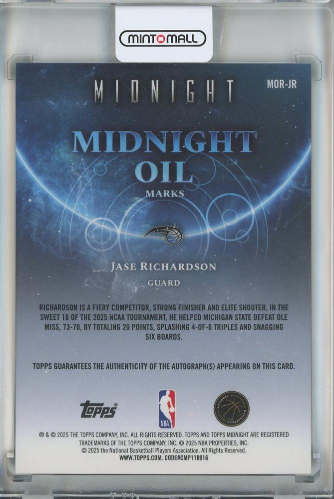 2025-26 Topps Midnight Jase Richardson Midnight Oil Rookie Marks #MORJR Orlando Magic