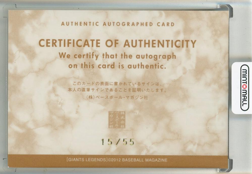 2013 BBM Giants Legends 松井秀喜 直筆サインカード【15/55】 読売ジャイアンツ