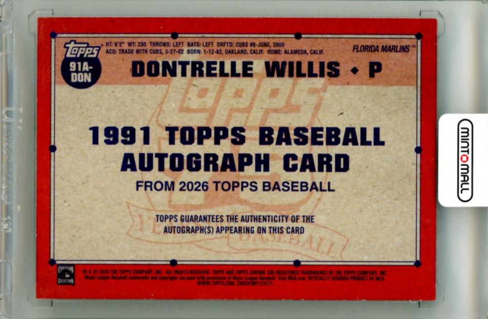 2026 Topps Series 1 Baseball Dontrelle Willis #91A-DON 1991 Topps Baseball Autograph Green Foil Parallel【15/99】 Marlins