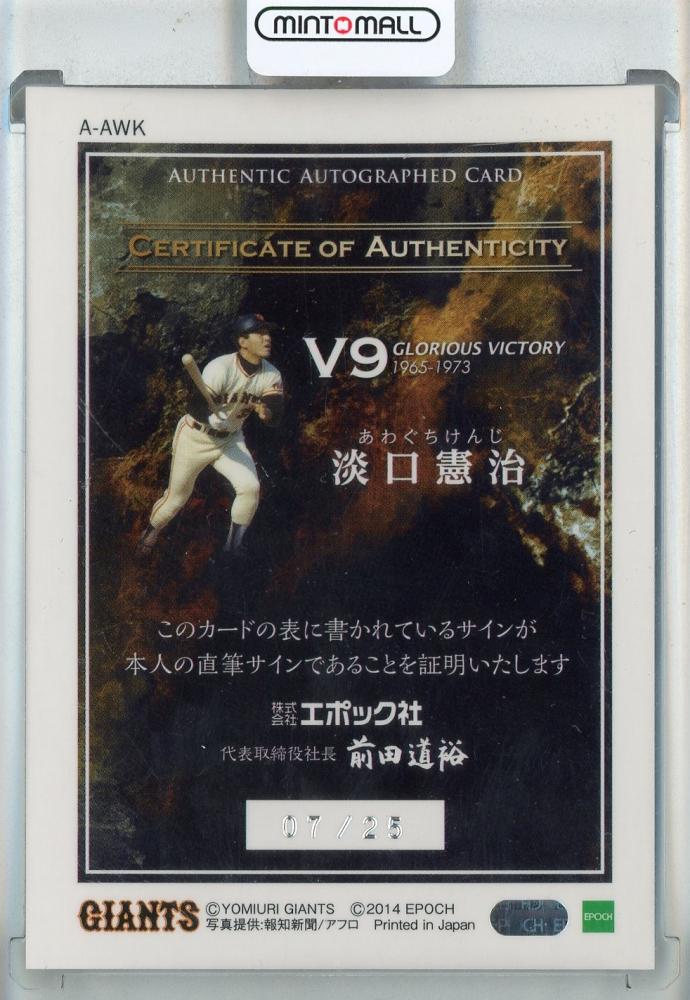 2014 EPOCH 読売ジャイアンツ 創設80周年 栄光のV9戦士 淡口憲治 Authentic Autograph 直筆サインカード【24/25】