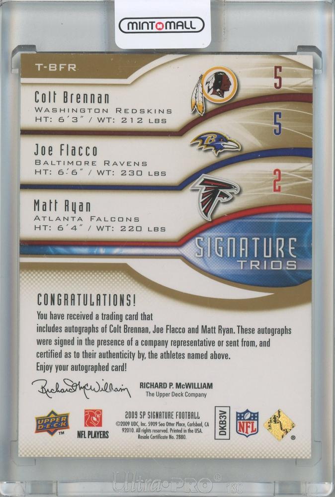 2009 SP Signature Joe Flacco/Colt Brennan/Matt Ryan Signature Trios #BFR【11/15】 Washington Redskins/Baltimore Ravens/Atlanta Falcons