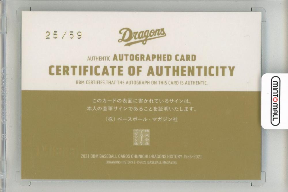 2021 BBM 中日ドラゴンズヒストリー 1936-2021 中村武志 直筆サインカード【25/59】
