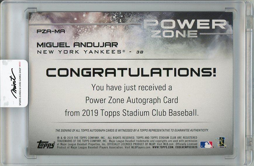 【表面右下微キズあり】2019 TOPPS Stadium Club Miguel Andujar Autograph【07/10】