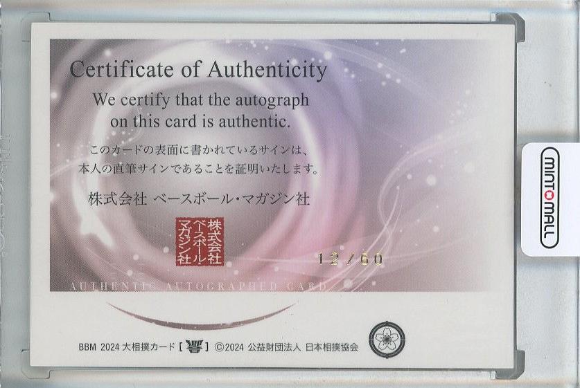 BBM 2024 大相撲カード 響 一山本大生 直筆サインカード【12/50】