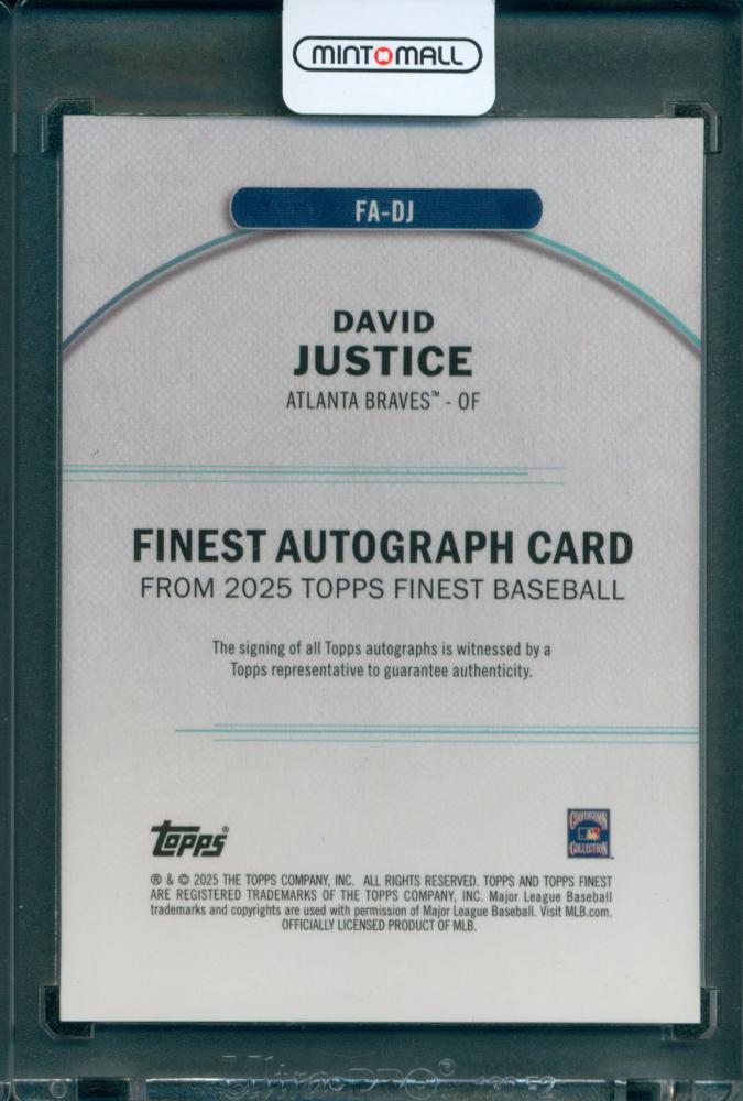 2025 TOPPS Finest David Justice #FA-DJ Finest Autographs Sky Blue Refractor【085/150】 Atlanta Braves