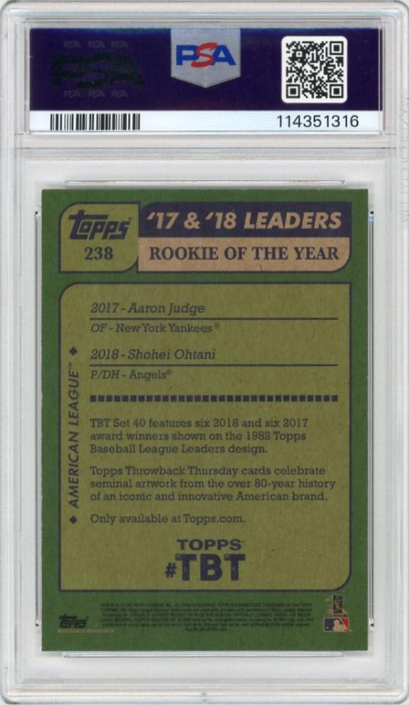 2018 Topps Throwback Thursday Aaron Judge / Shohei Ohtani '82 Topps #238【PSA 9 MINT】