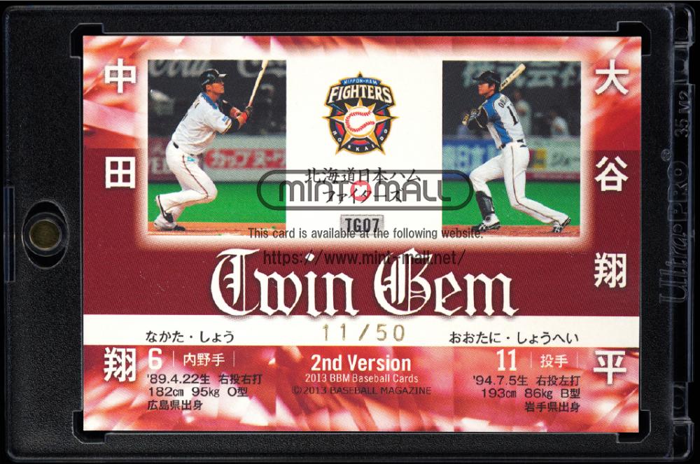 2013 BBM 2nd Version TG07 大谷翔平/中田翔 Twin Gem ホロ箔サイン版 大谷JsyNo【11/50】 北海道日本ハムファイターズ (MSV#1697)