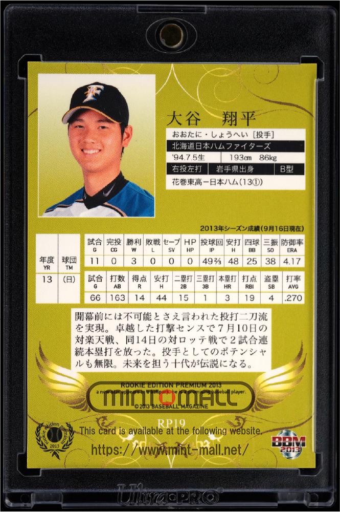 2013 BBM ルーキーエディションプレミアム RP19 大谷翔平 北海道日本ハムファイターズ (MSV#1963)