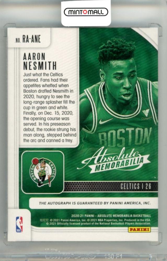 2020-21 Panini Absolute Memorabilia Aaron Nesmith #RA-ANE Rookie Autograph Level 2 Card【26/49】 Celtics
