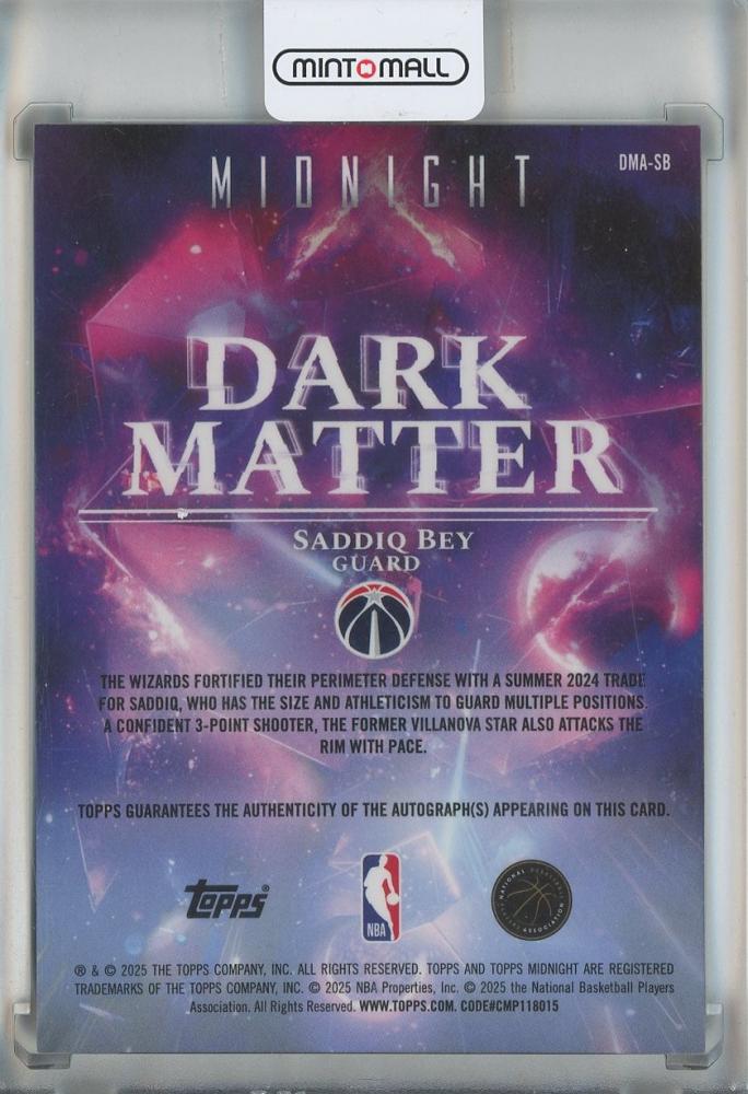 2025-26 Topps Midnight Saddiq Bey Dark Marks Autographs #DMASB【42/50】 Washington Wizards