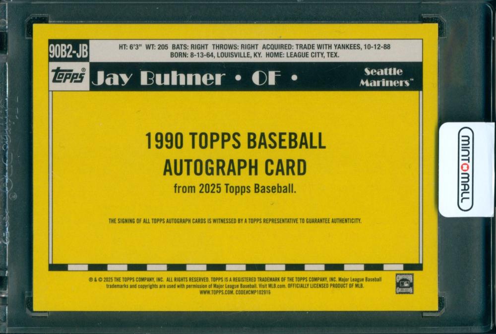 2025 Topps Series 2 Jay Buhner 1990 TOPPS BASEBALL AUTOGRAPH CARDS Seattle Mariners