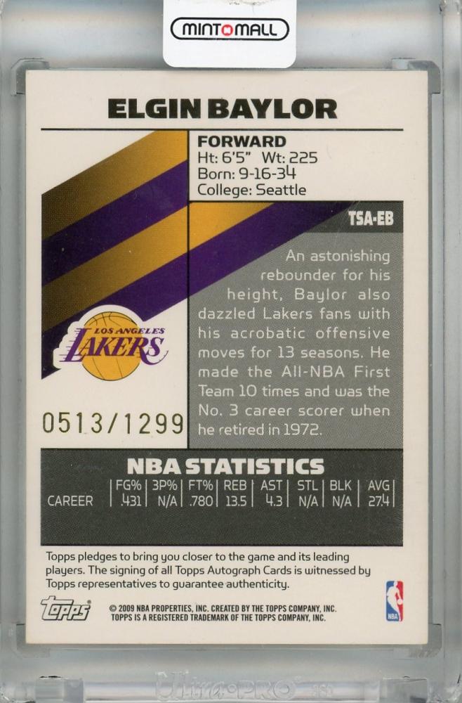 2008-09 Topps Signature Elgin Baylor Autographs #TSAEB ※角折れあり【0513/1299】 Los Angeles Lakers