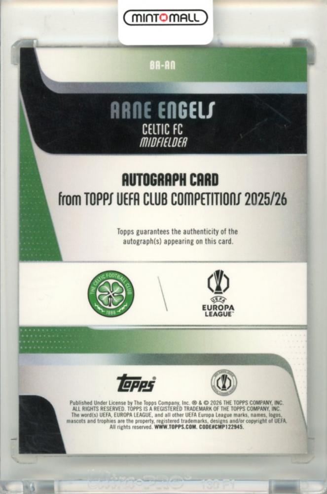 2025-26 Topps UEFA Club Competitions Arne Engels #BA-AN Base Autograph Card Celtic FC