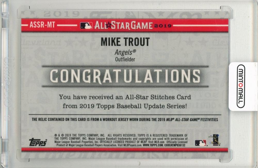 2019 TOPPS Update Series Mike Trout All Star Stitches #ASSRMT Los Angeles Angels