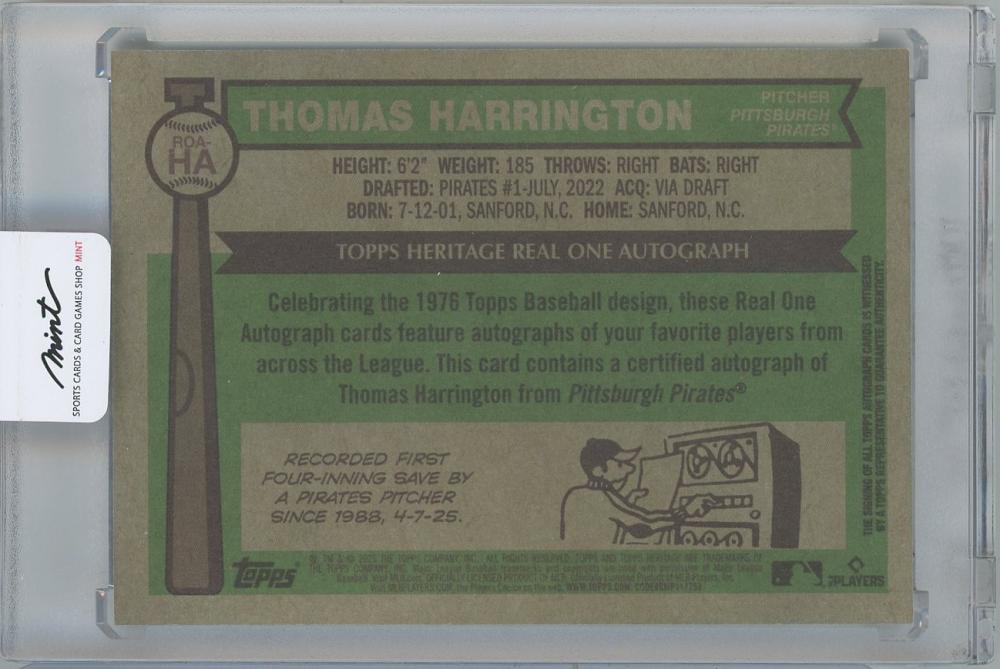 2025 TOPPS Heritage Real One Autographs / THOMAS HARRINGTON(Pittsburgh Pirates)