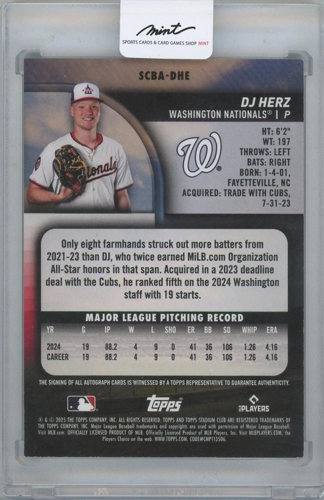 2025 TOPPS Stadium Club Autographs / DJ HERZ(Washington Nationals)