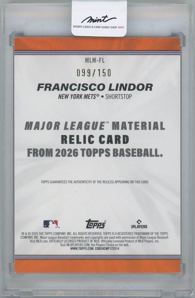 2026 TOPPS Major League Materials Blue / FRANCISCO LINDOR(New York Mets) 【099/150】