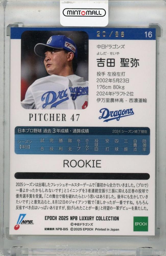 2025 Epoch Luxury 吉田聖弥 NPB STARS【01/50】 中日ドラゴンズ