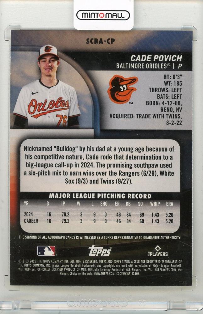 2025 TOPPS Stadium Club Cade Povich Autographs Yellow #SCBACP Baltimore Orioles