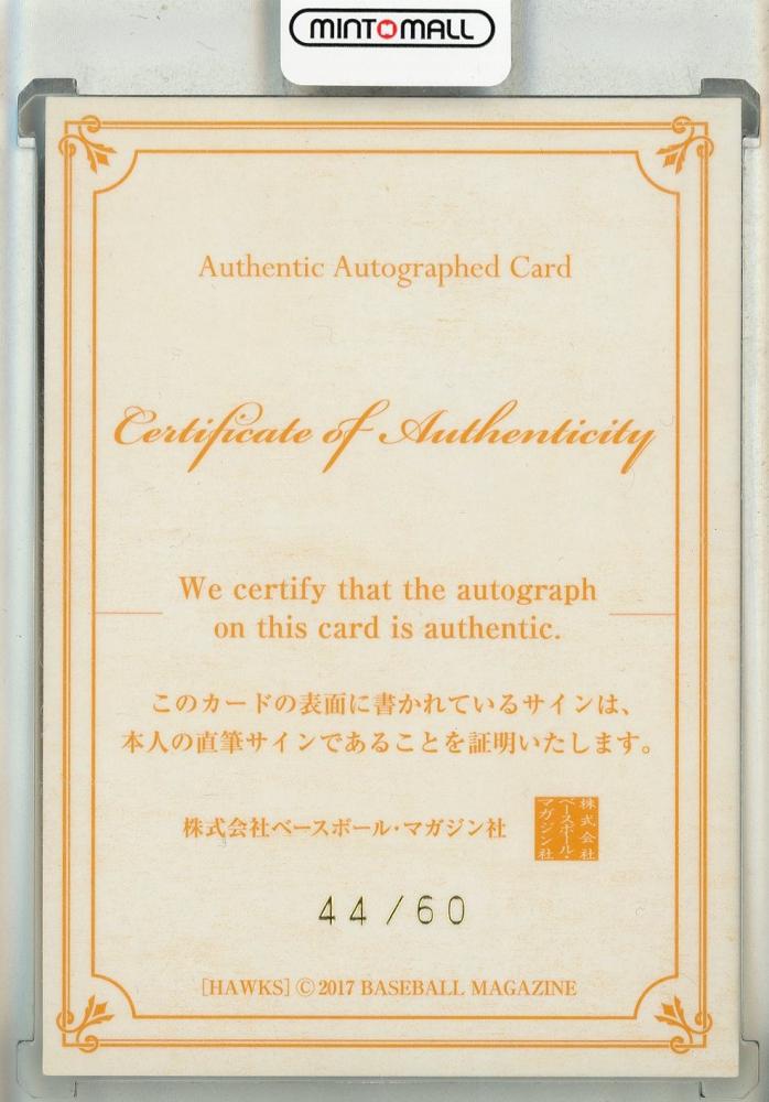 2017 BBM 福岡ソフトバンクホークス 牧原大成 直筆サインカード【44/60】