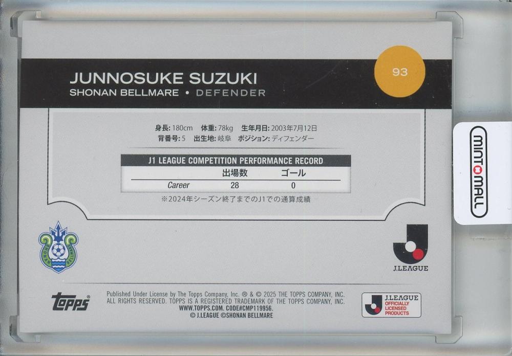 2025 TOPPS J. LEAGUE PREMIUM 鈴木淳之介 Orange Foil #93【14/25】 湘南ベルマーレ