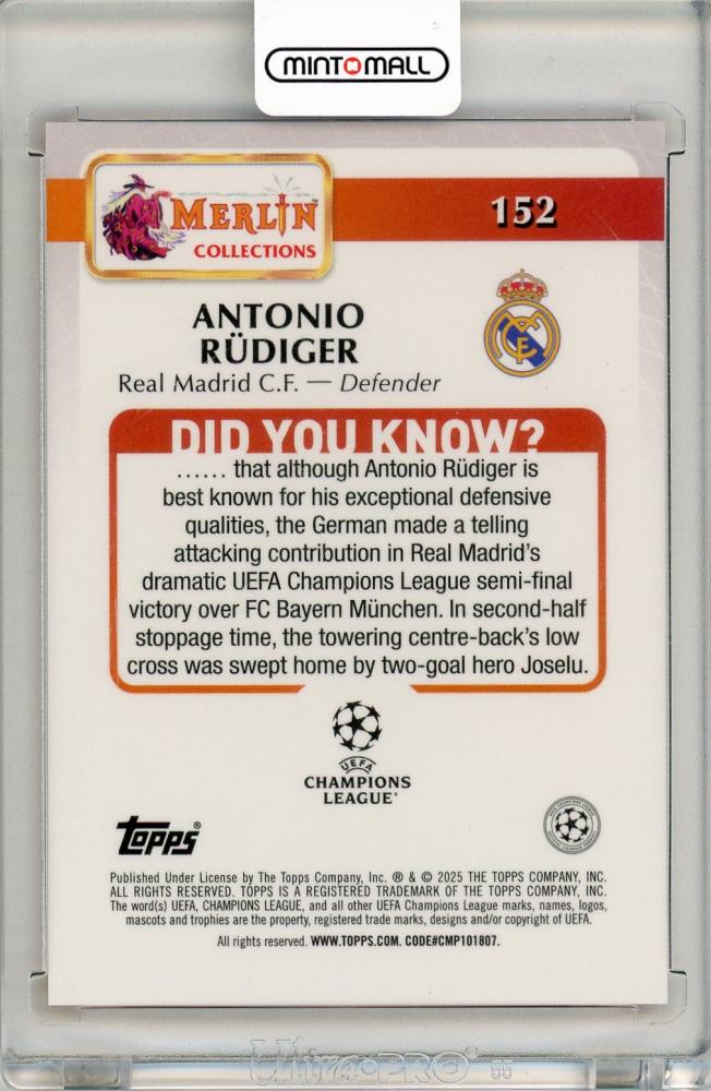 2024-25 Topps Merlin UEFA Club Competitions Antonio Rüdiger Orange Atomic【10/25】 Real Madrid C.F.