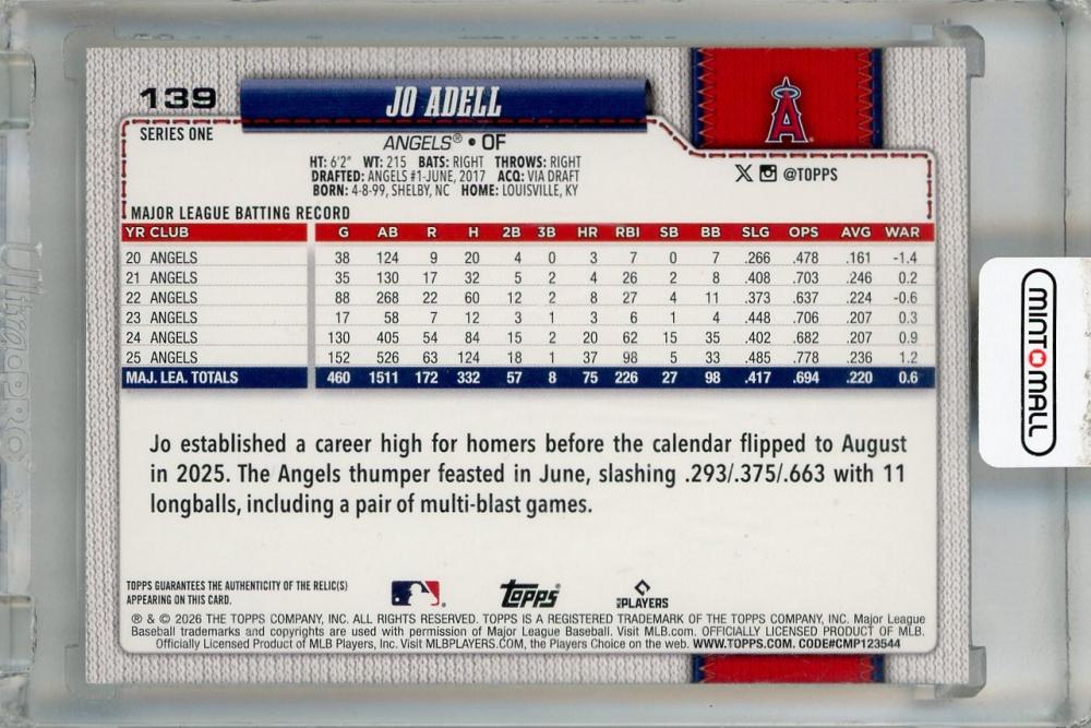 2026 Topps Series 1 Jo Adell Base Real One Relics #139 Los Angeles Angels