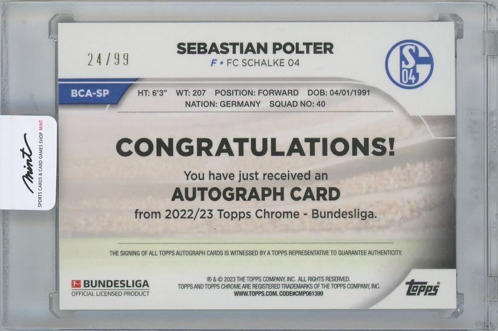 2022-23 TOPPS Chrome Bundesliga Autographs Green Refractors / SEBASTIAN POLTER(FC Schalke 04) 【24/99】