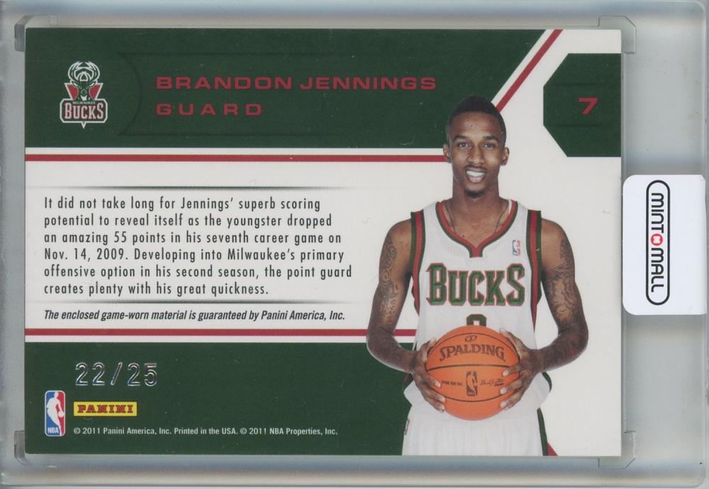 2010-11 Panini Totally Certified Brandon Jennings Potential Jerseys Prime Gold #7【22/25】 Milwaukee Bucks