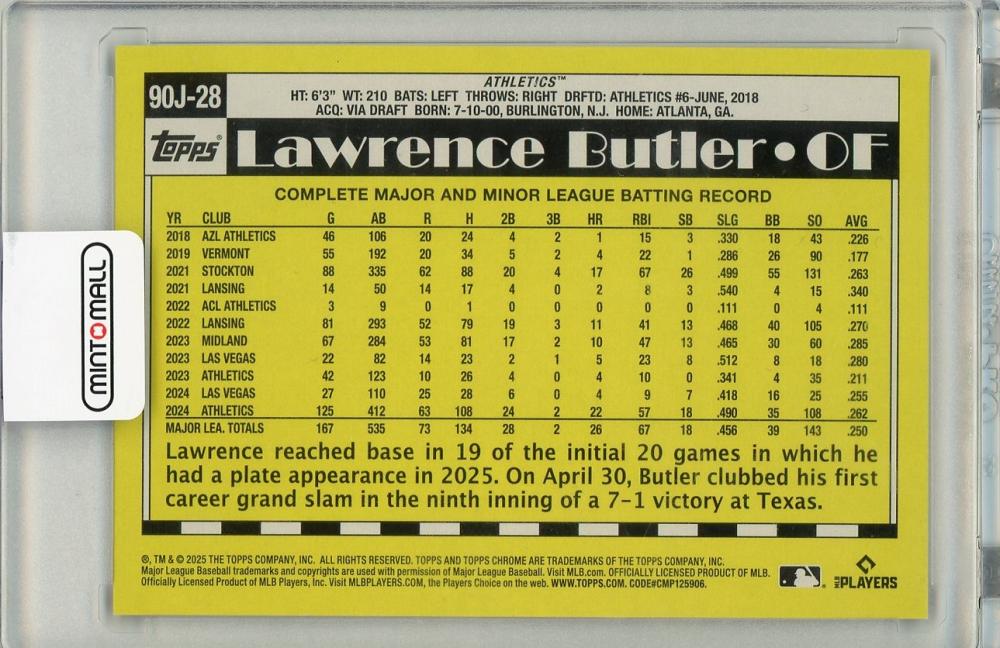 2025 TOPPS Update Lawrence Butler #90J-28【09/25】 Athletics