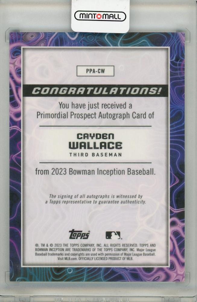 2023 TOPPS BOWMAN INCEPTION Cayden Wallace Auto #PPA-CW【39/50】 Kansas City Royals