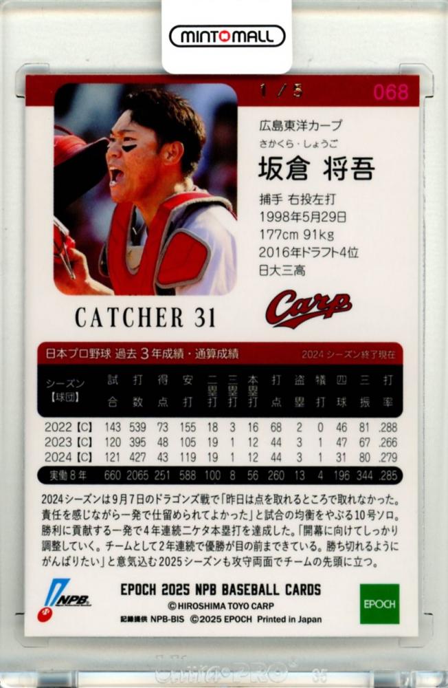 2025 EPOCH NPB プロ野球カード 坂倉将吾 #068 レギュラーパラレル Cherry Blossom Pink【1/5】《1stナンバー》 広島
