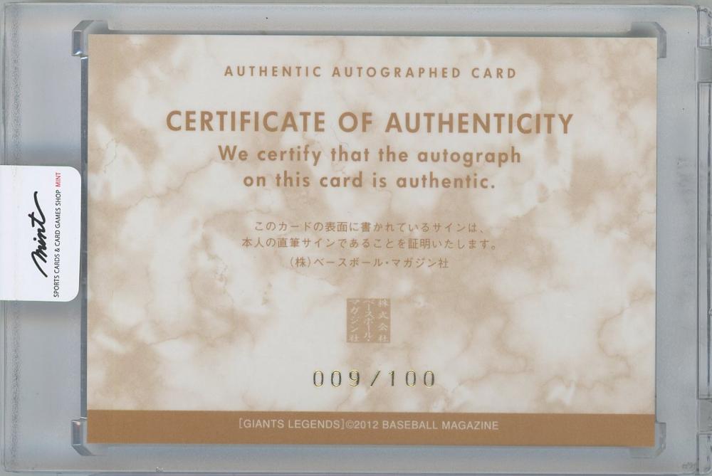 2013 BBM ジャイアンツ・レジェンド / 末次利光 直筆サインカード 【009/100】