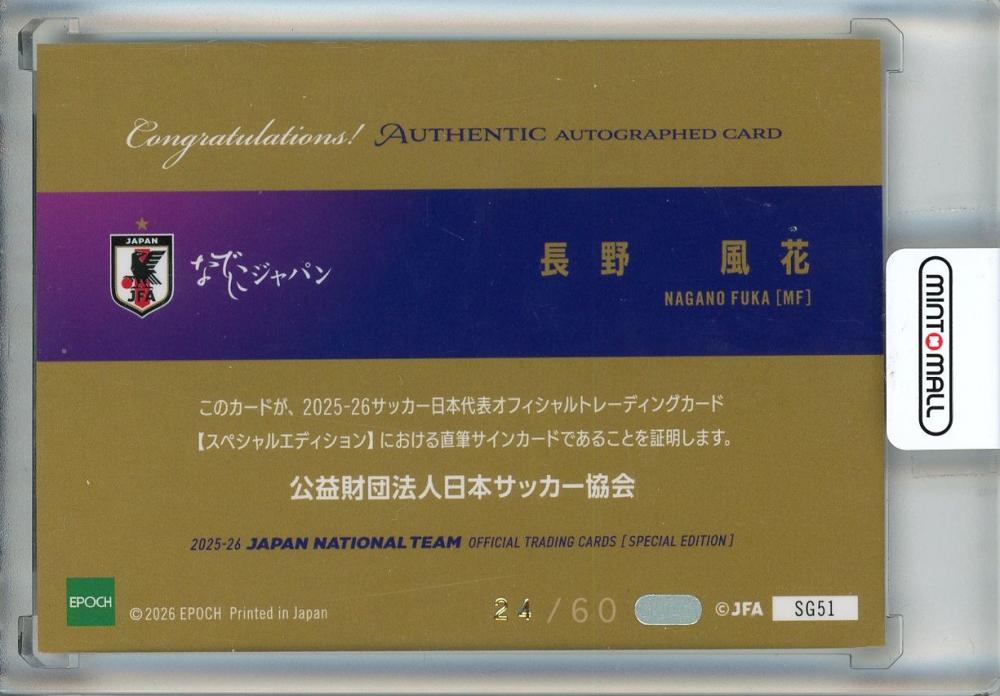 2025-26 EPOCH サッカー日本代表 スペシャルエディション 長野風花 直筆サインカード【24/60】 日本代表