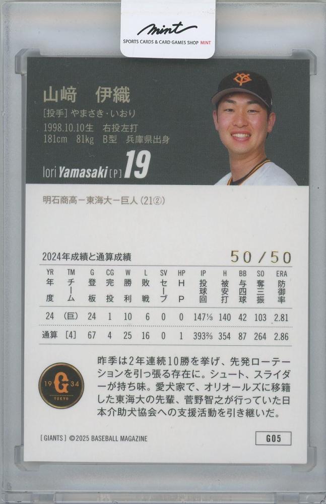 2025 BBM 読売ジャイアンツ #G05 / 山崎伊織 ホロ箔サイン入りパラレルカード【50/50】