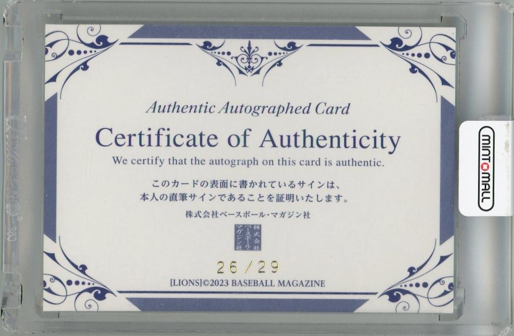 2023 BBM 埼玉西武ライオンズ 蛭間拓哉 直筆サインカード(RC)【26/29】