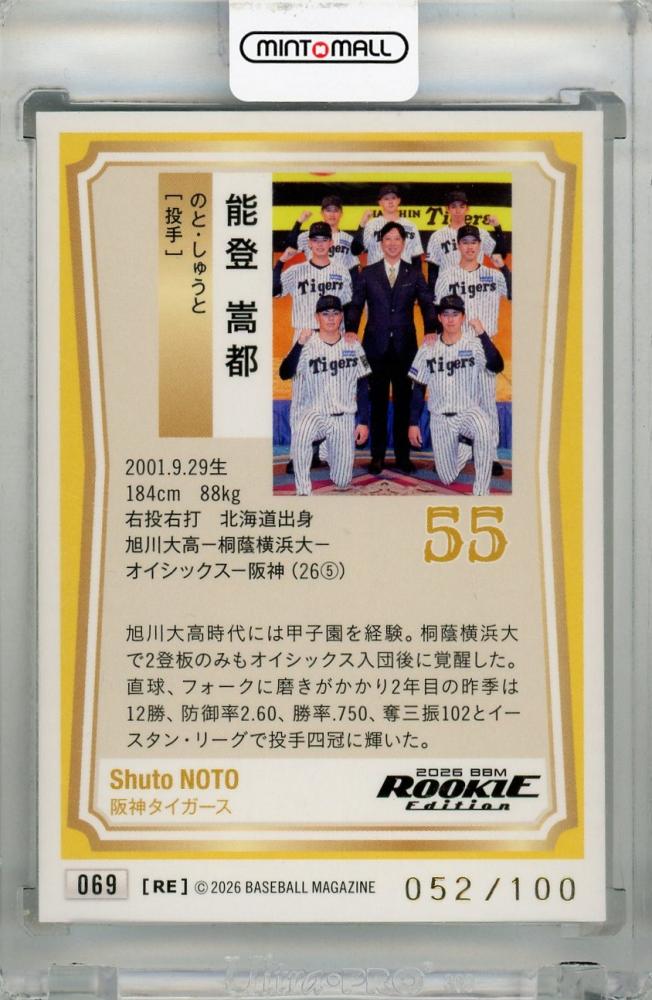 2026 BBM ルーキーエディション 能登嵩都 金箔サインカード【052/100】 阪神タイガース