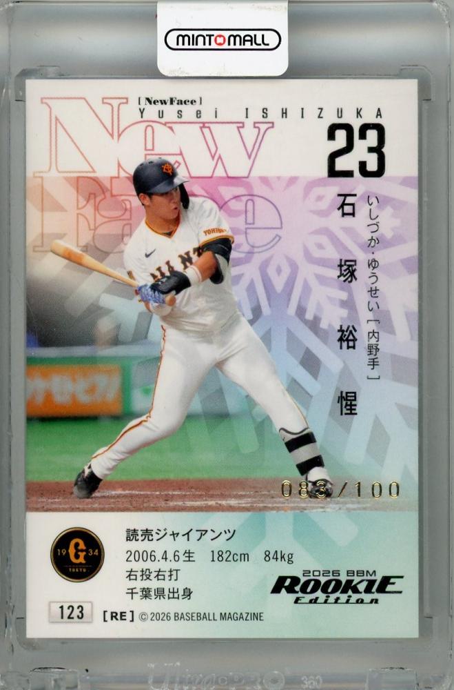 2026 BBM ルーキーエディション 石塚裕惺 NEW FACE 金箔サイン版【083/100】 読売ジャイアンツ