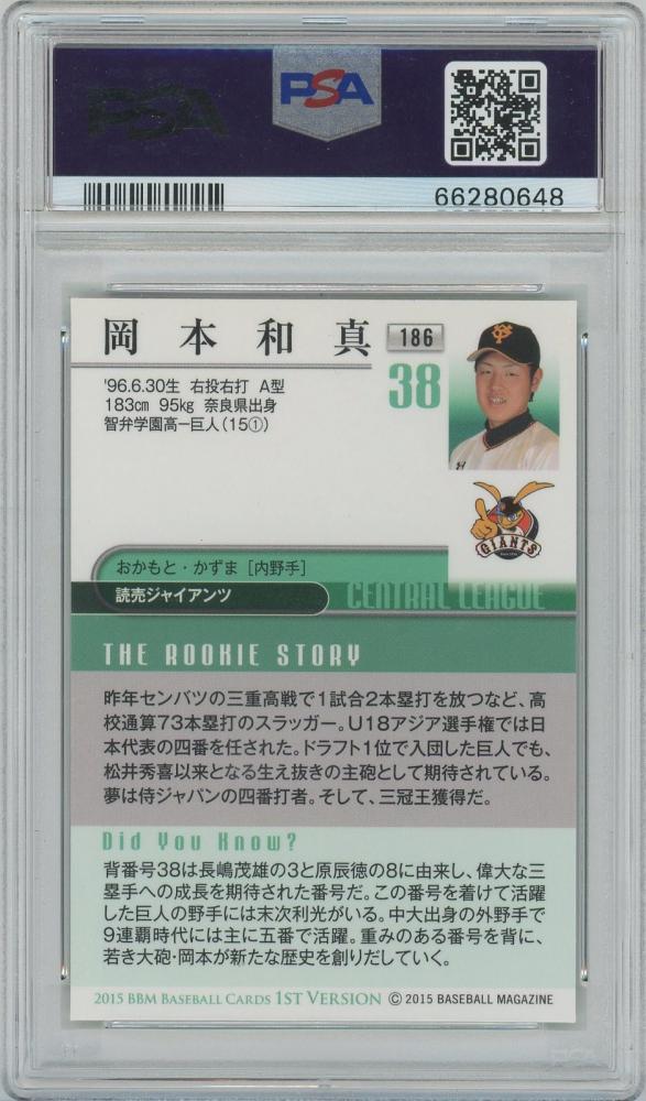 2015 BBM 1st Version #186 / 村上宗隆(読売ジャイアンツ) 銀箔サイン入りパラレルカード [PSA10/GEM MINT]