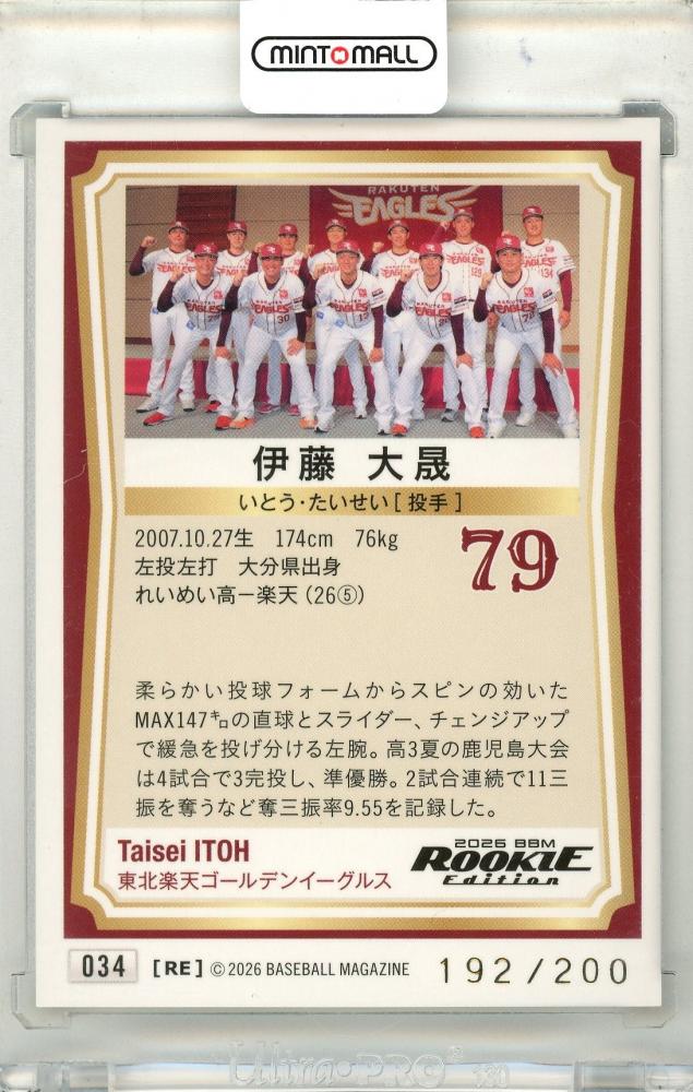 2026 BBM ルーキーエディション 伊藤大晟 #034 銀箔サインカード【041/200】 楽天