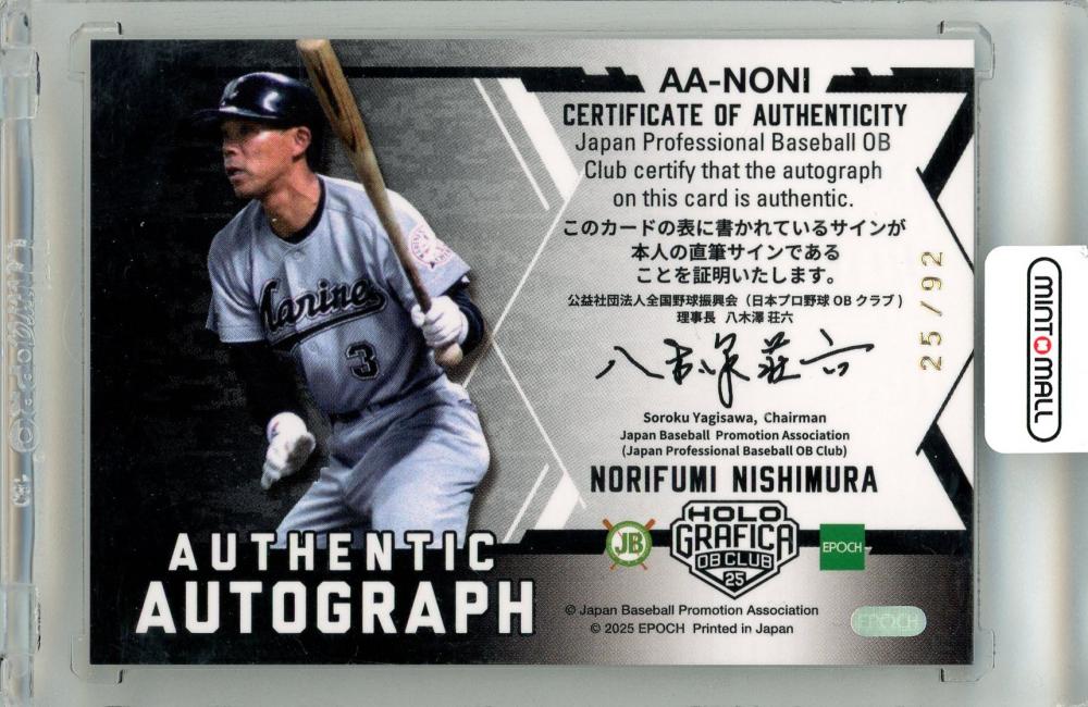 2025 EPOCH OBクラブ ホログラフィカ 西村徳文 #AA-NONI AUTHENTIC AUTOGRAPH 直筆サインカード ホログラムA版【25/92】 ロッテ