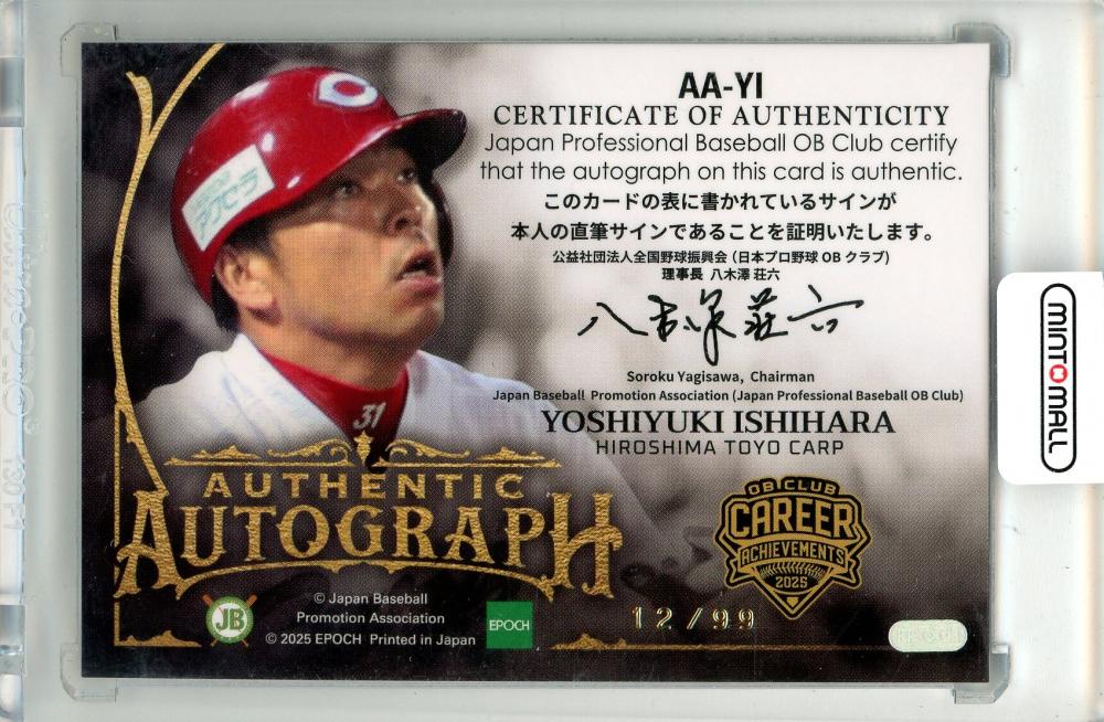 2025 EPOCH OBクラブ キャリアアチーブメント 石原慶幸 #AA-YI AUTHENTIC AUTOGRAPH 直筆サインカード 金箔版【12/99】 広島
