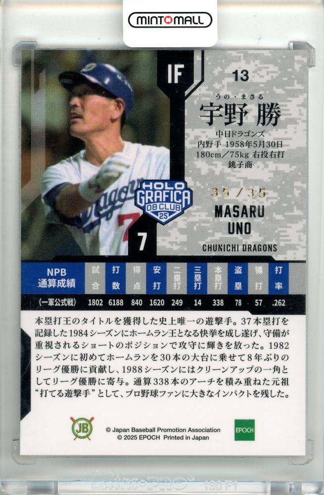 2025 EPOCH OBクラブ ホログラフィカ 宇野勝 #13 REGULAR PARALLEL HOLOGRAM ホログラムB版【35/35】《ラストナンバー》 中日