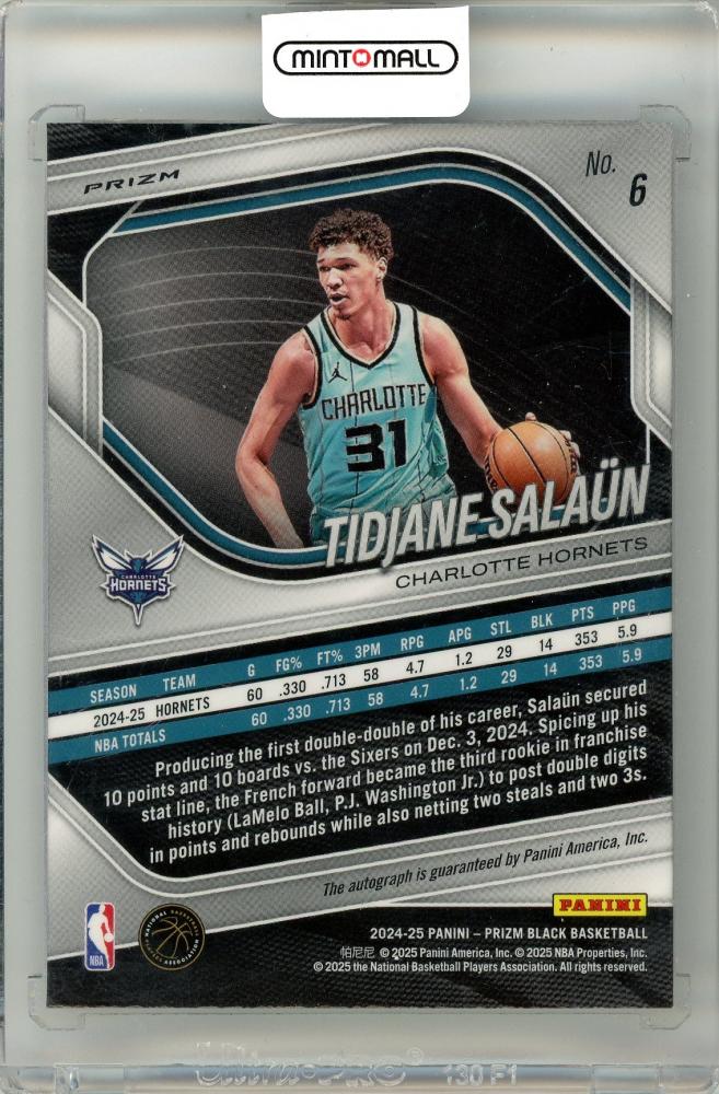 2024-25 Panini Prizm Tidjane Salaun #6 Autograph Card Hornets